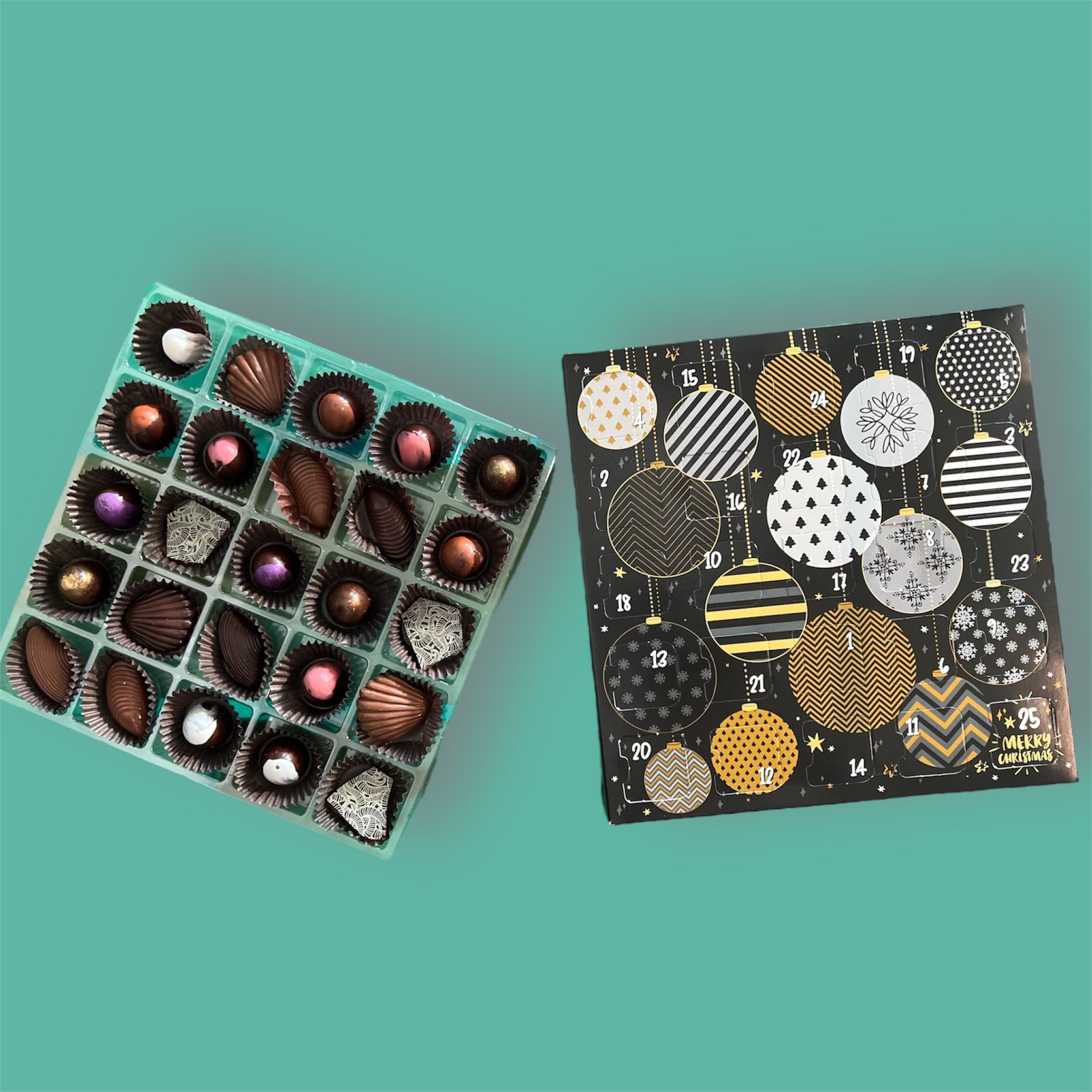 24 days of chocolate! Includes caramels, bark, milk & dark chocolates seashells. Spoil yourself this holiday! In store pickup only!